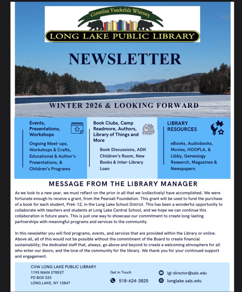 We thank Camille for her unwavering support and dedication. Her efforts are deeply valued and appreciated by all of us at CVW Long Lake Public Library.